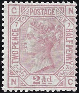 £525.00| /Great Britain 1877 2½d rosy mauve Plate 7, SG141. A very fine and fresh unmounted mint example with full original gum, lettered NC. BUY NOW: Order...