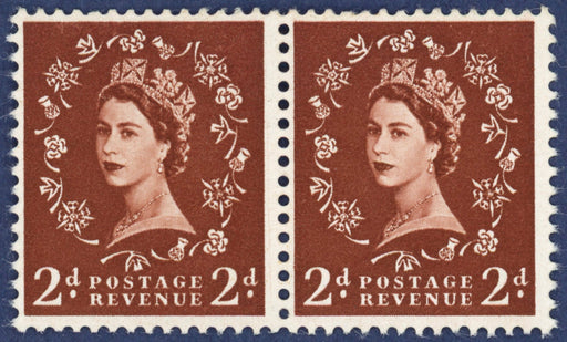 £750.00| /Great Britain 1858 Queen Elizabeth II 2d 'Dollis Hill Phosphor Trial', SG573var. A very fine perforated horizontal pair on ungummed unwatermarked s...