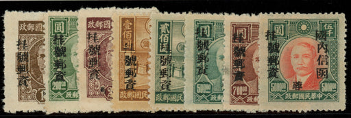 £850.00| /China 1949 (July) Szechwan Province "Unit" surcharges, registration fee set of 8 to $5,000 vermillion and green, SG1270/77. A fine mint set despite...