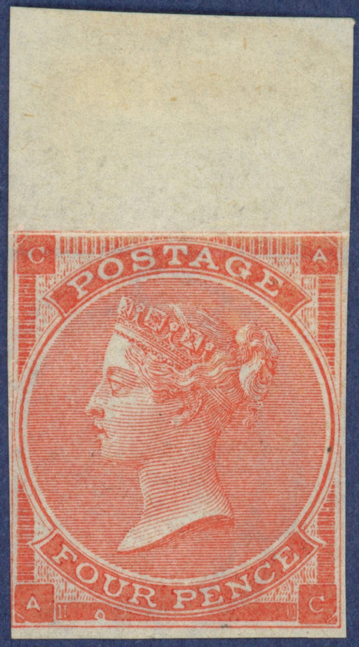£2,500.00| /Great Britain 1867 4d vermillion, Plate 9 imprimatur, SG94var. A very fine unused, with original gum, imperforate imprimatur lettered 'AD'. A rare ...