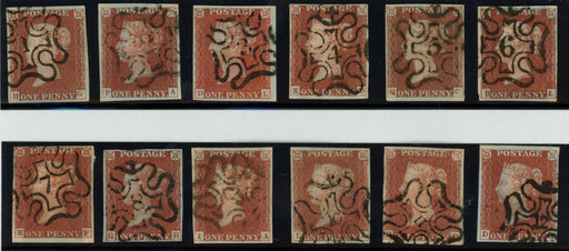 £2,200.00| /Great Britain 1841 1d red brown, SG8m. A very fine used set of twelve four margin examples each neatly cancelled by a London numbered Maltese Cross...