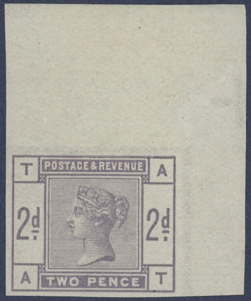 £4,000.00| /Great Britain 1884 2d Lilac, SG189a. A superb unmounted mint, with full original gum, imperforate printing variety, corner marginal example, letter...