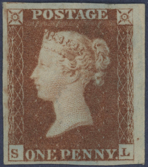£4,500.00| /Great Britain 1841 red brown Plate 9, SG7. A superb unused, with original gum, large four margin example lettered 'SL'. Lovely colour and very rare...