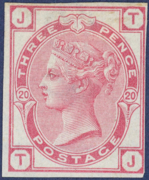 £2,500.00| /Great Britain 1879 3d rose, Plate 20 (watermark Spray), imprimatur, SG143var. A very fine unused imperforate imprimatur with original gum, lettered...