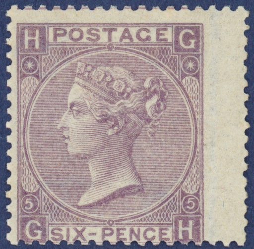 £1,500.00| /Great Britain 1865 6d lilac Plate 5, SG97. A very fine and fresh unmounted mint, with full original gum, right hand wing margin example lettered 'G...