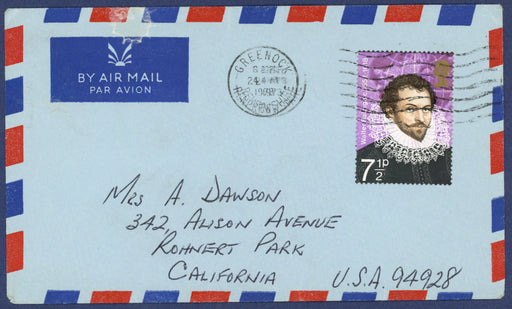 £3,750.00| /Great Britain 1973 7½p British Explorers 'Walter Raleigh' error, SG926b. A very fine used example on cover to California with ultramarine (Walter R...