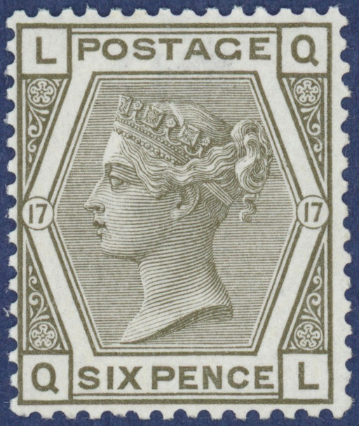 £1,250.00| /Great Britain 1874 6d grey, Plate 17, SG147. A very fine well centered, exceptionally unmounted mint example with full original gum, lettered 'QL'....