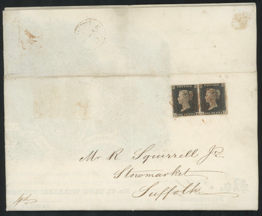Great Britain 1840 1d black plate 1a pair on first day cover, SG2