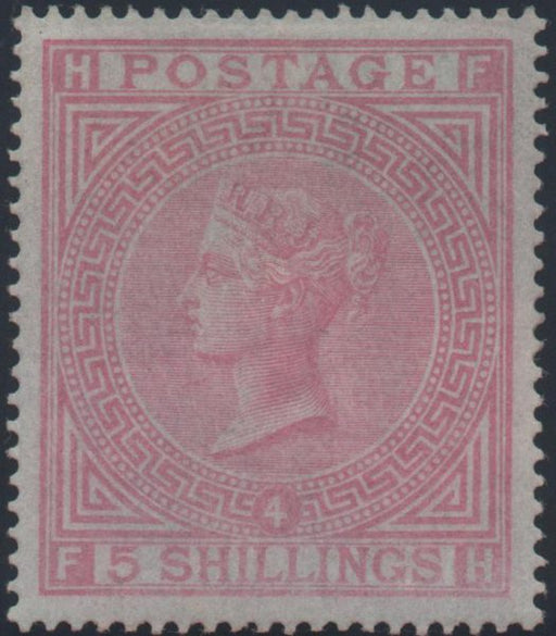 £40,000.00| /Great Britain 1882 5 shilling (Plate 4) On Blued Paper, SG130. A superb mint example of this very rare stamp. Exceptional Quality for this stamp. ...