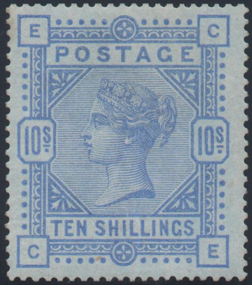 £40,000.00| /Great Britain 1884 10 shilling Ultramarine On Blued Paper, SG177. A superb mint example of this very rare stamp. Exceptional Quality with outstand...