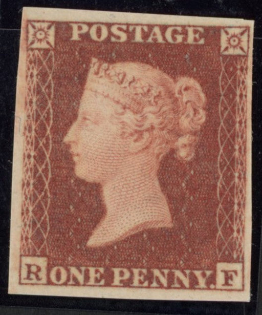 £900.00| /Great Britain 1852 1d red brown Plate 133 imprimatur, SG8. A very fine four margin example lettered 'RE'. A very scarce printing from the first app...