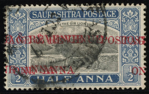 £650.00| /I.F.S. Soruth 1949 (May) 1a on ½a black and deep blue, Type 19 surcharge, ERROR SURCHARGE DOUBLE, SG58a. A fine used example for this rare surcharg...