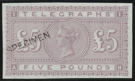 £1,250.00| /Great Britain 1877 £5 Orange Plate 1 colour trial Telegraphs, SGL237var. A very fine and fresh unmounted mint, with full original gum, imperforate ...