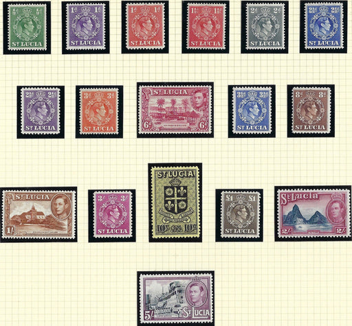 St. Lucia King George VI 1938-48 Watermark Multiple Script CA (sideways on 2s) ½d to £1 sepia set of 17, SG128a/141.