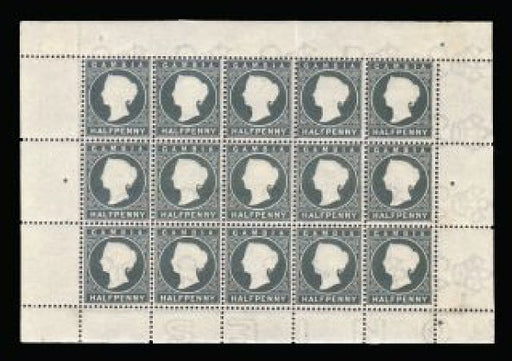 £95.00| /Gambia 1886-93 ½d grey-green, complete sheet of 15(5x3), fresh orginal gum. (mounted in margins). Second comb perforation. Fine and attractive. Unm...