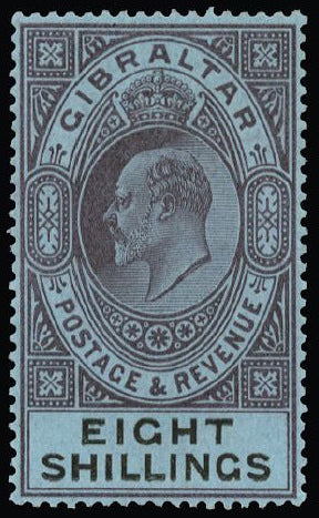 £170.00| /Gibraltar 1903 8s dull purple and black/blue, brilliant original gum. Very fine. Unmounted Mint. SG 54 ALERT ME WHEN ANOTHER IS AVAILABLE > SEL...
