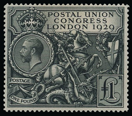 £950.00| /Great Britain 1929 £1 Postal Union Congress, SG438. A very fine unmounted mint example with full original gum, widely regarded as one of the most s...