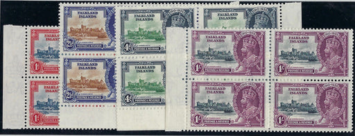 Falkland Islands 1935 Jubilee set of 4 to 1s in marginal blocks of 4 SG139/42