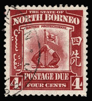 £110.00| /North Borneo Postage Due. 1939 4c scarlet, fine used with part Jesselton type D16 circular date stamp. Very scarce used. Accompanied with British P...