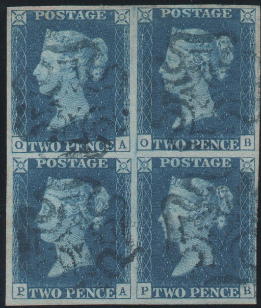 £250,000.00| /Great Britain 1840 2d. Blue from Plate 2. Block of 4 lettered OA, OB, PA, PB, cancelled by Maltese Cross in Blue. A beautiful piece being the only...