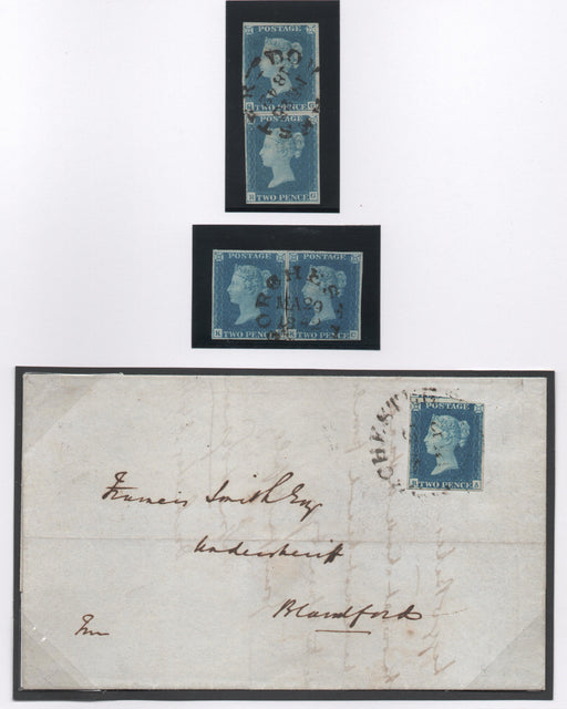 £75,000.00| /Great Britain 1840 2d. Blue Plate 2, SG5. The superb ‘vertical’ and ‘horizontal’ ”pairs” together with the unique cover, all cancelled by the circu...