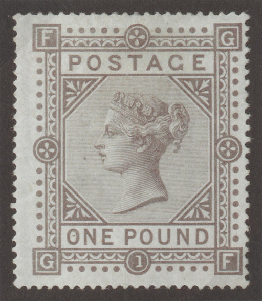 £75,000.00| /Great Britain 1878 (26 September) £1 Brown-lilac (Plate 1), Watermark Maltese Cross, Perforation 15½ x 15., SG129. Very fine unused example with la...