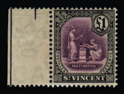 £95.00| /St. Vincent 1913-17 £1 mauve and black, left marginal, watermark MCA, unmounted original gum. Scarce thus. Unmounted Mint. SG 120 ALERT ME WHEN AN...