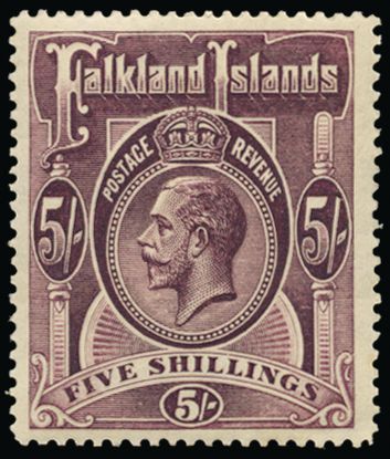 Sold out Sold outFalkland Islands 1912-20 5s maroon SG67b£175.00| /Falkland Islands 1912-20 5s maroon, brilliant unmounted original gum. Superb. Unmounted Mint. SG 67b ALERT ME WHEN ANOTHER IS AVAILABLE > SELL ... View full details£175.00| /Sold out