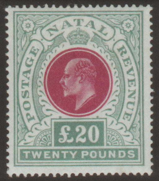 £50,000.00| /South Africa Natal 1902 £20 red and green, SG145b. A superb mint example of this great British Colonial rarity. Provenance: Ex. Manus, (Plumridge, ...