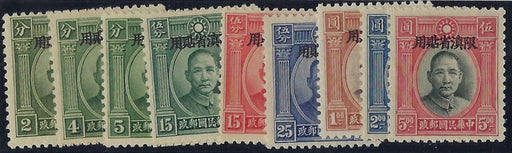 £625.00| /China Yunnan Province 1932-34 Sun Yat-sen, emblem with single circle, Peking overprint set of 9 to $5 blackish green and scarlet, SG43/51. A very...