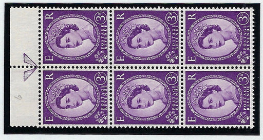 £2,100.00| /Great Britain Queen Elizabeth II 1959 3d deep violet "Dollis Hill Phosphor Trial". A very fine perforated top marginal block of six on gummed cro...