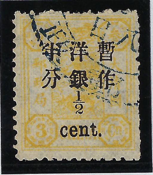 £2,995.00| /China 1897 (May) large figure surcharge, 'spaced 1 1/2mm', on Dowager Empress third printing, 1/2c on 3ca dull yellow, variety surcharge spaced on...