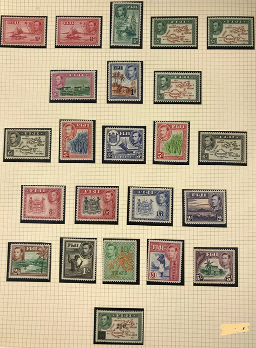 Sold out Sold outFiji 1938-41 King George VI ½d to £1 ultramarine and carmine SG249/267.£250.00| /Fiji King George VI 1938-41 ½d to £1 ultramarine and carmine and including 2½d on 2d brown and green set of 23, SG249/267. A wonderful and high qua... View full details£250.00| /Sold out
