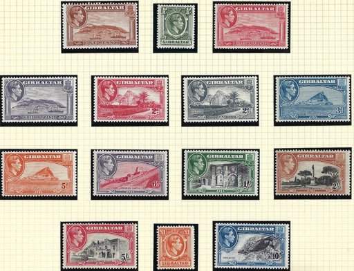 Sold out Sold outGibraltar 1938-51 King George VI set of 14, SG121/131.£150.00| /Gibraltar King George VI 1938-51 Multiple Script CA ½d to £1 orange set of 14, SG121/131. A lovely pictorial set with vibrant and fresh colour and ... View full details£150.00| /Sold out