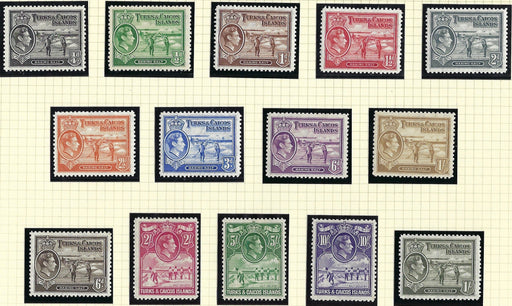 Turks and Caicos Islands 1938-45 George VI Watermark Multiple Script 1/4d to 10s bright violet set of 14, SG194/205.