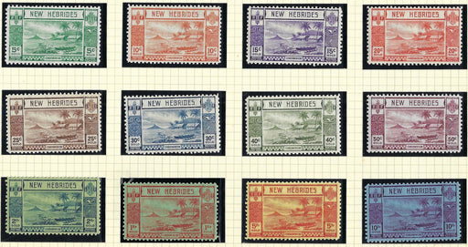 New Hebrides 1938 (1 June) 5c to 10f violet/blue set of 12, SG52/63