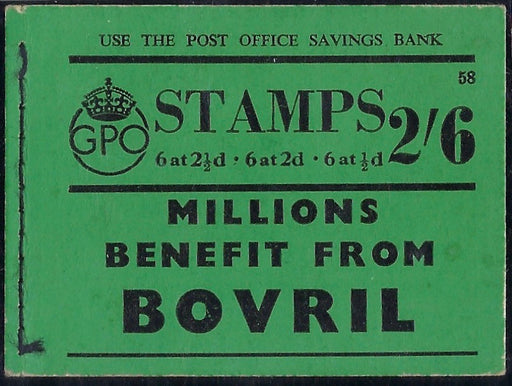 £750.00| /Great Britain King George VI 1940 2s6d Green Stamp Booklet with advert "MILLIONS BENEFIT FROM BOVRIL" (Edition No.58), SG BD15. A very fine and fr...