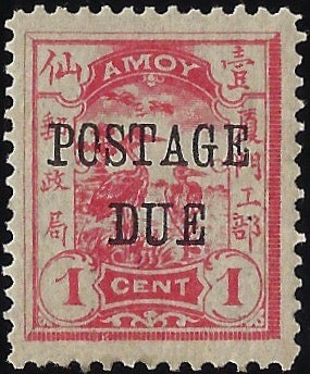 £1,000.00| /China 1896 (June) (Shanghai) 1c vermilion "Herons in a Marsh" Amoy Local Post postage due, type D6 overprint from the rare 4th setting, SGD29. A fi...