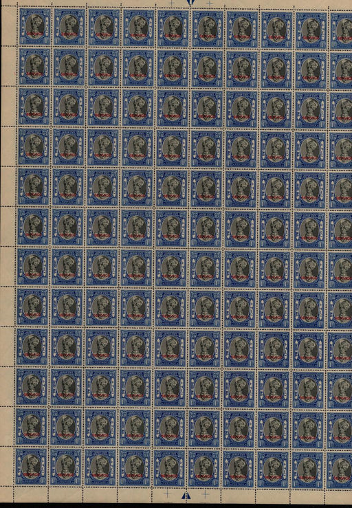 £975.00| /Indian Feudatory States Jaipur 1936-46 1a black and blue Officials, full sheet of 120, SGO25, Scott O24. A fine entire sheet unmounted mint with fu...