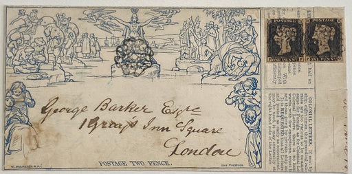 £17,500.00| /Great Britain 1840 2d Mulready letter sheet, Stereo A92 used with pair of 1d blacks, plate 1b, SG2. An exceptional example of the first printings o...