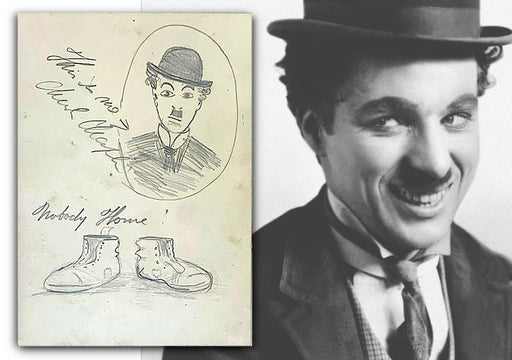 Charlie Chaplin signed self-portrait sketch