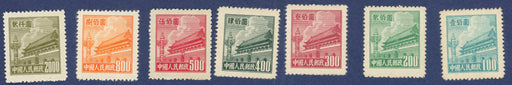 £200.00| /China 1950 People's Republic of China General Issues Tien an Men set of 7 to $2,000 brown-olive, People's Printing Works printing, perforations 14,...