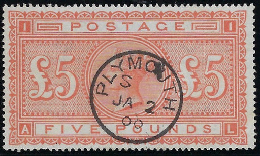 £3,500.00| /Great Britain 1882 £5 Orange Plate 1, SG137. A Very fine used example lettered AL, neatly cancelled by a Plymouth circular date stamp for JA.2.1900...