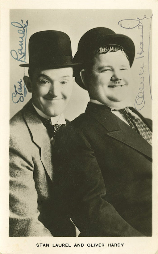 £2,950.00| /A mint condition signed photo postcard of the iconic Hollywood comedy duo Laurel and Hardy. Stan Laurel (1890 - 1965) and Oliver Hardy (1892 - 19...