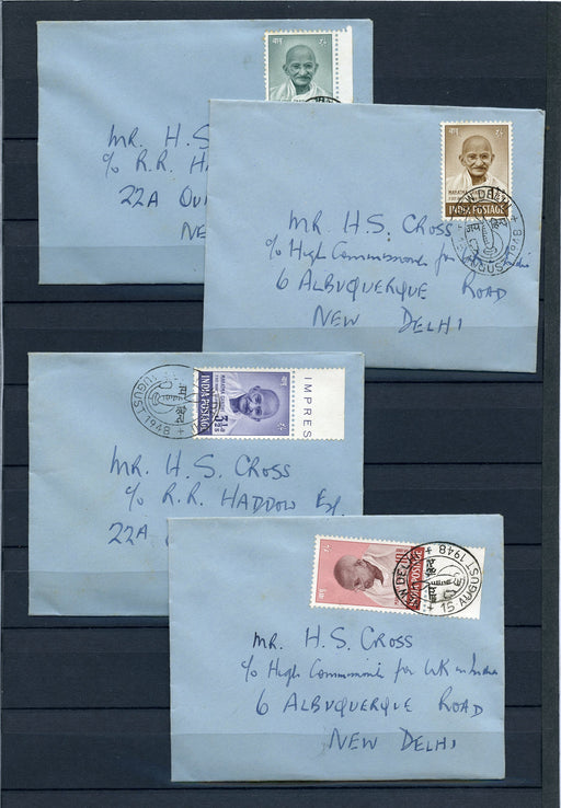 £995.00| /India 1948 (15 Aug) First Anniversary of Independence (Gandhi) set of 4 on individual, hand-addressed first day covers, each tied by d/r 'NEW DELHI...