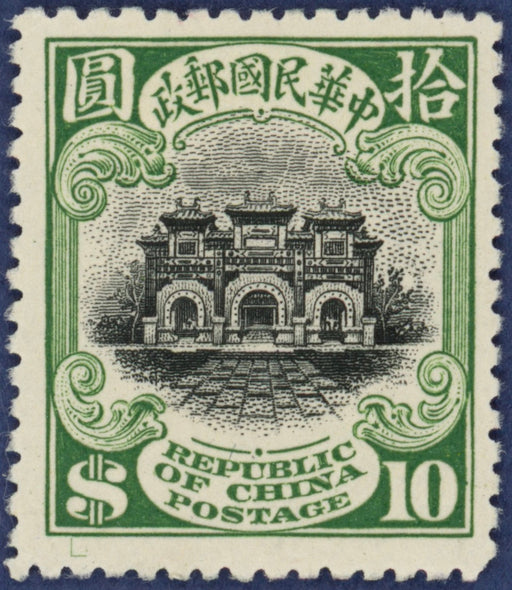 £4,000.00| /China 1913 (May) $10 black and green 'Entrance, Hall of Classics, Peking', London printing, SG286. A very fine and fresh mint example with large pa...