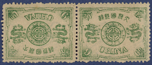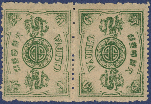 £1,800.00| /China 1894 (17 Nov) 60th Birthday of Dowager Empress 9ca dull green from first printing, tele-beche horizontal pair, SF22d. A fine mint pair with l...