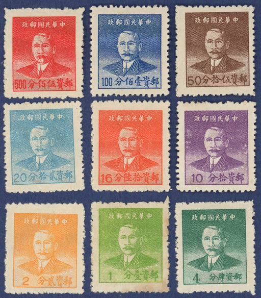 China 1949 Sun Yat-sen set of 9 to 500c, SG1348/56