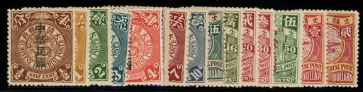 China 1912 Shanghai Republican overprint set of 15 to $5 myrtle and salmon, SG192/206
