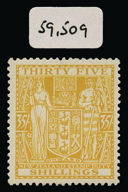 £7,000.00| /New Zealand Postal Fiscal. 1931-40 "Arms" 35s orange-yellow, watermark 43, "Wiggins Teape" paper, unmounted mint with original gum, SGF181. An exce...